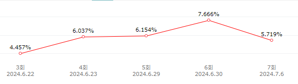 낮과 밤이 다른 그녀는 현재 7회 기준으로 5.7%, 6회에서는 7.7%로 최고치를 기록했습니다.